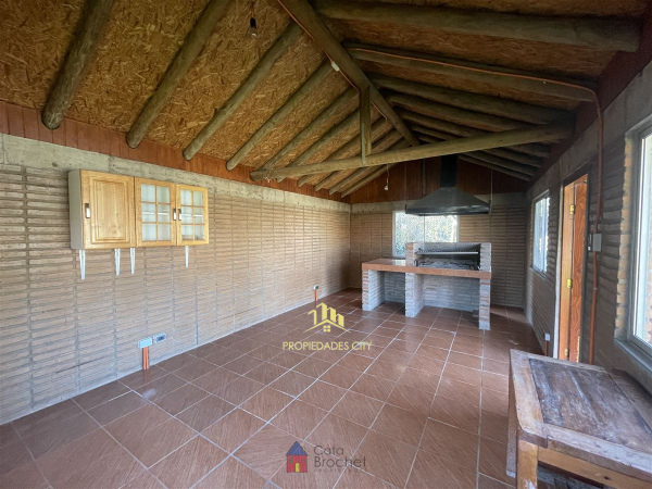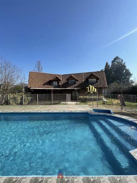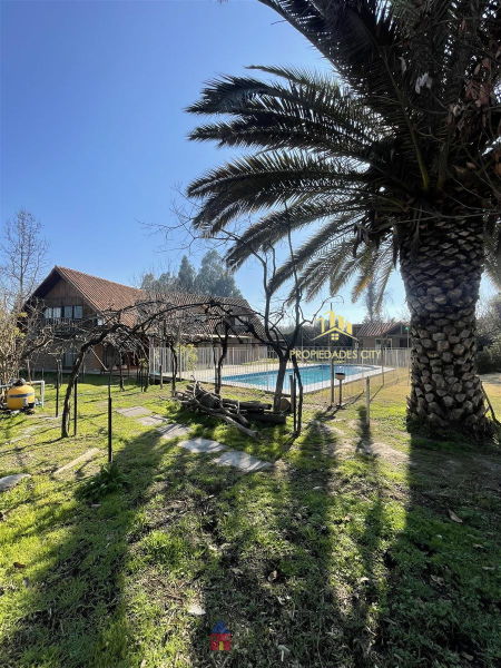 Posee un hermoso patio con arboles frutales, estacionamiento techado, piscina, juegos infantiles, cancha de futbol, quincho completamente equipado, baño, garaje y una gran bodega.