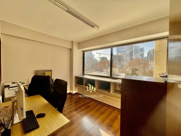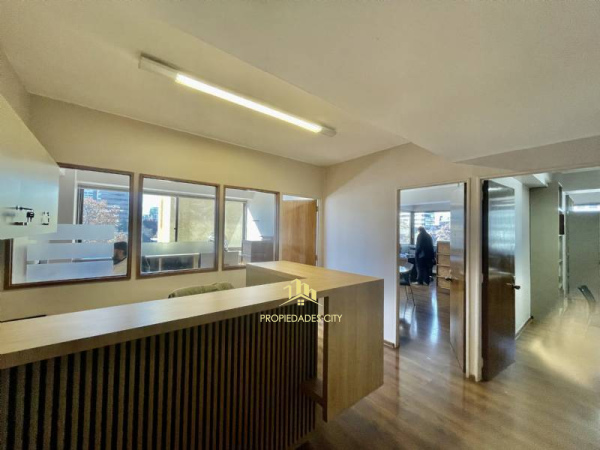 La oficina esta totalmente remodelada. El acceso es recibido por un hall de entrada, tres amplios privados, donde dos de ellos disfrutan de una despejada y linda vista al oriente, y cuenta con dos baños.
