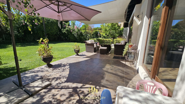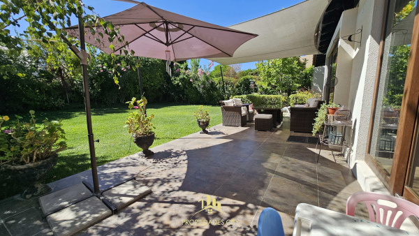 Hermoso patio con riego automático, lindos arboles, bebedero de aves, terraza con cerámica y toldo de vela para el sol de la mañana, orientación oriente.
