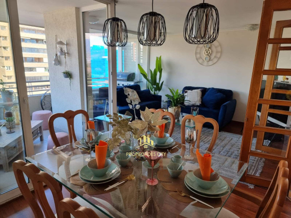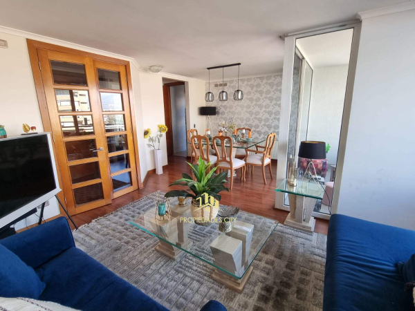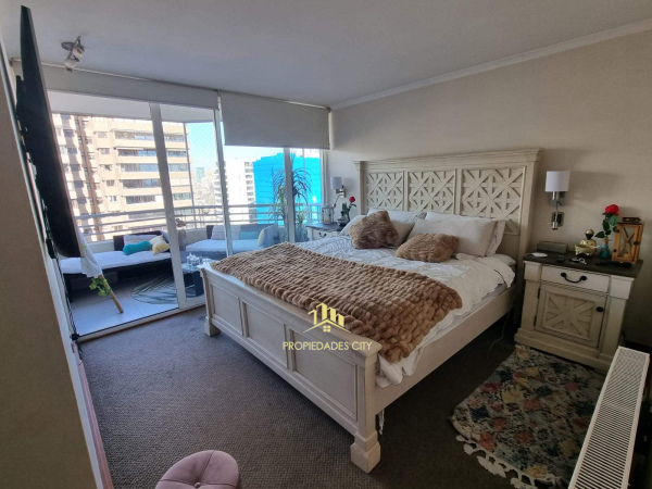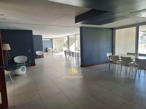 Edificio cuenta con sala de eventos, gimnasio, áreas verdes, juegos infantiles, piscinas, estacionamiento de visitas, cámaras de seguridad y conserjería 24/7