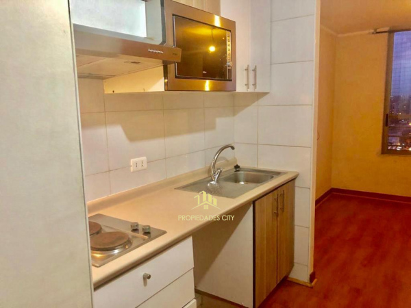 Céntrico y moderno departamento tipo estudio (un ambiente) en venta. A pasos del metro Parque Almagro (L3), Toesca (L2) y Moneda (L1), orientación sur, cercano a universidades y supermercados Tottus y Lider.