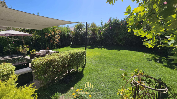 Hermoso patio con riego automático, lindos arboles, bebedero de aves, terraza con cerámica y toldo de vela para el sol de la mañana, orientación oriente.