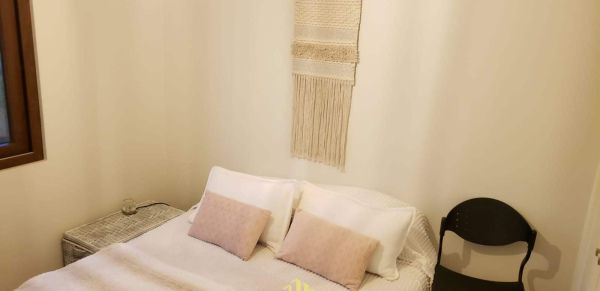 Dos dormitorios del mismo tamaño que comparten un baño completo.