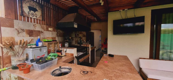 Jardín formado, quincho que tiene conexión a la cocina por lavadero techado.