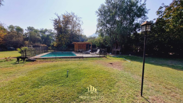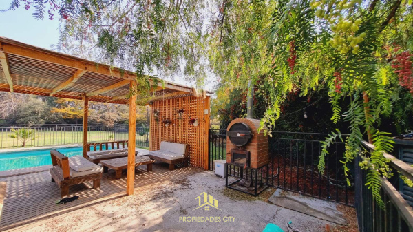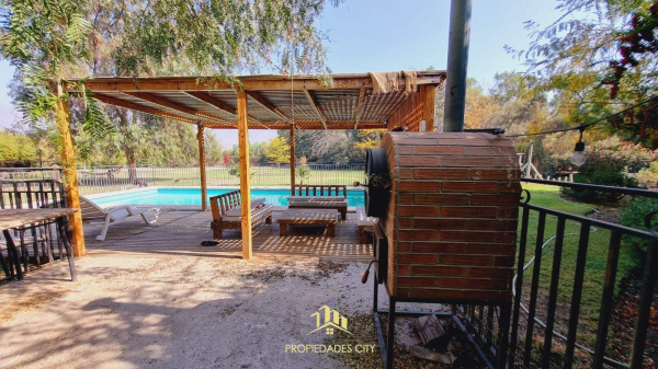 Piscina con reja de seguridad, quincho y horno de barro.